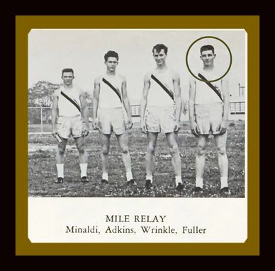 Nederland's track teams were perennial district champions, and Leon was a big part of it. Here he is with the district champion mile relay team, on which he ran anchor leg. Hear him tell about it on Down Trails of Victory podcast! (L to R--Larry Minaldi, Donald Adkins, Jimmy Wrinkle, Leon Fuller)