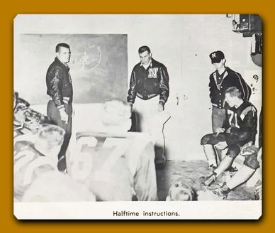 This picture was taken at halftime during the 1955 football season. The picture includes head coach Bum Phillips and assistant coach Chief Wilson. Hear Leon Fuller talk about playing football for these legendary coaches on Down Trails of Victory podcast!